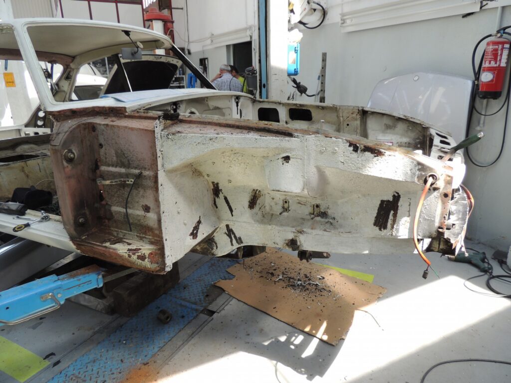 Continuando a desmontagem para iniciar o trabalho na carroceria continuamos a constatar a espantosa falta de corrosão que só pode ser explicada pelo facto deste carro ter estado mais de 30 anos dentro de uma garagem e protegido dos rigores do tempo.