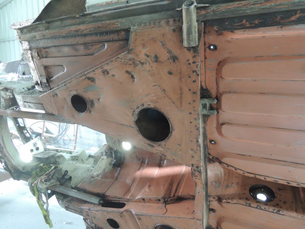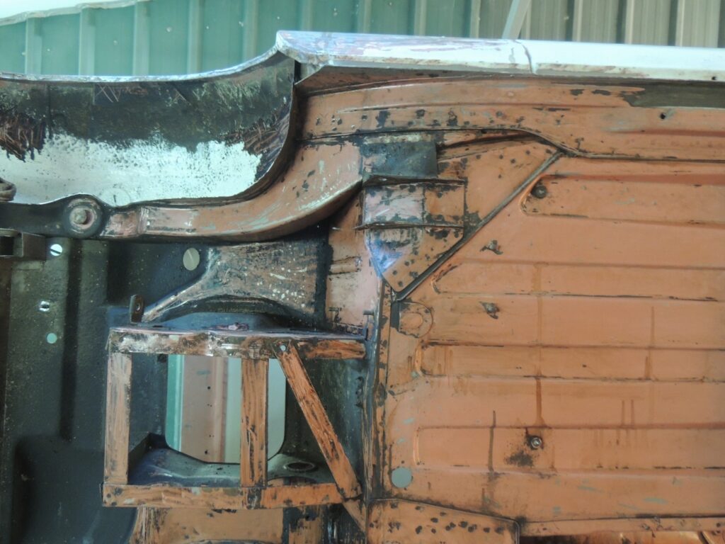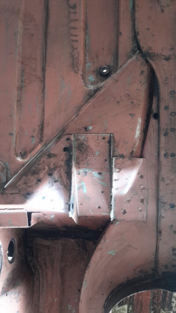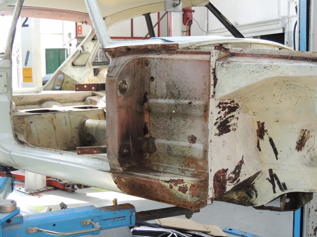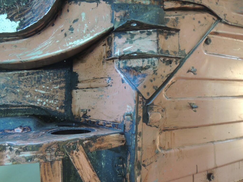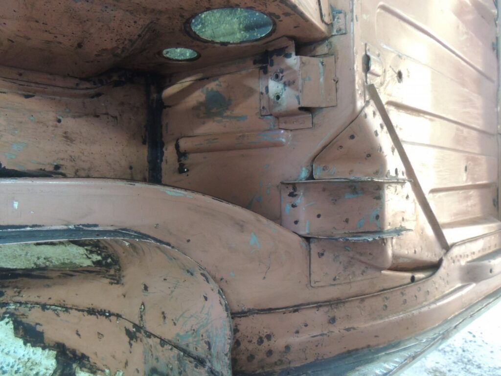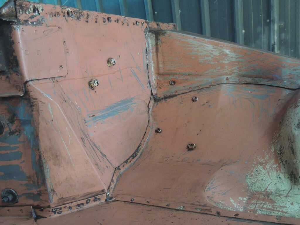 Estava tudo lá, mesmo as mais pequenas aplicações de chapa para os diversos componentes. Por vezes pequenos painéis, mais aplicações, constituindo vários níveis de chapa soldados uns sobre os outros, que com o tempo habitualmente apodreciam até desaparecer deixando enormes buracos, que se tivessem que ser substituídos dificilmente ficariam como originalmente.